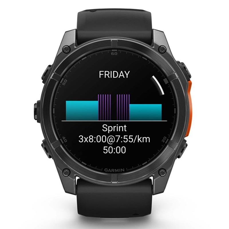 The Fenix 8 stands out with its AMOLED 1.4” touchscreen display, robust 51mm titanium case, and 29-day battery life. Whether navigating tough terrains, tracking intense workouts, or managing daily tasks, this smartwatch delivers premium performance and durability.