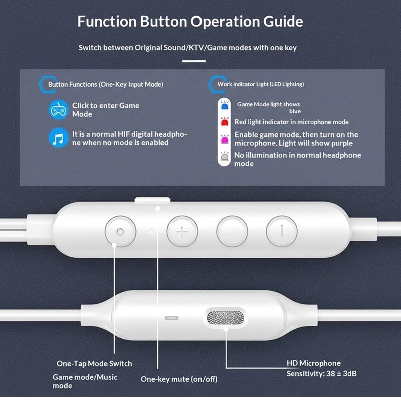 - One-key switch between gaming mode and music mode