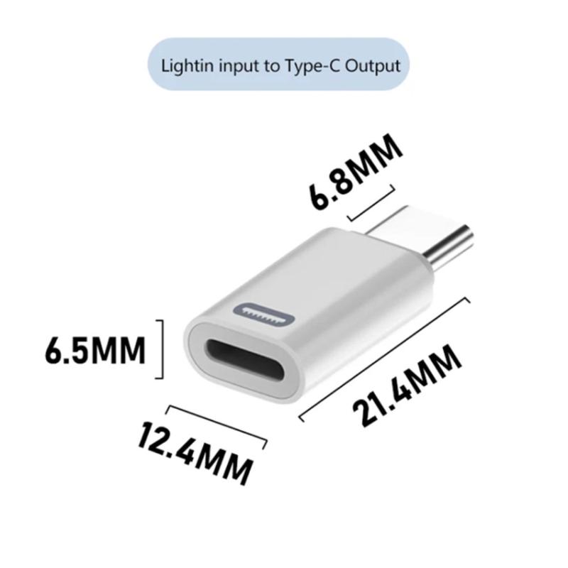 - USB-C male to Lightning female converter for flexible cable use