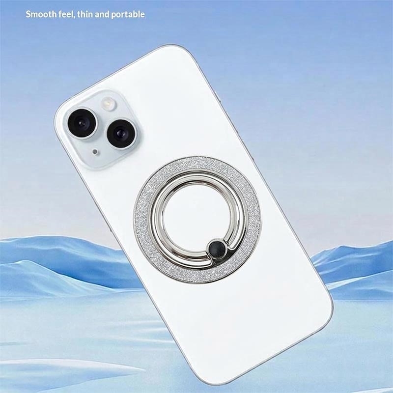 Add more comfort and convenience to your phone with this Magnetic Glitter Phone Ring Holder. Designed for everyday use, it works as a secure finger grip, a rotating kickstand, and a compact desk stand in one stylish accessory.