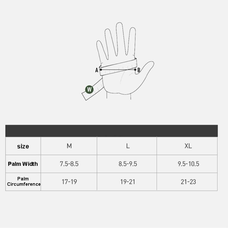 - Size XL: Palm width: 9.5-10.5cm, Palm circumference: 21-23cm
