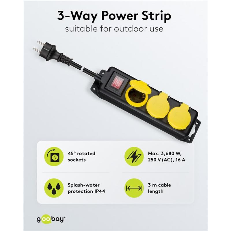 Goobay 3-Way Outdoor Power Strip with 3m Cable - Reliable Performance for Indoor & Outdoor Use