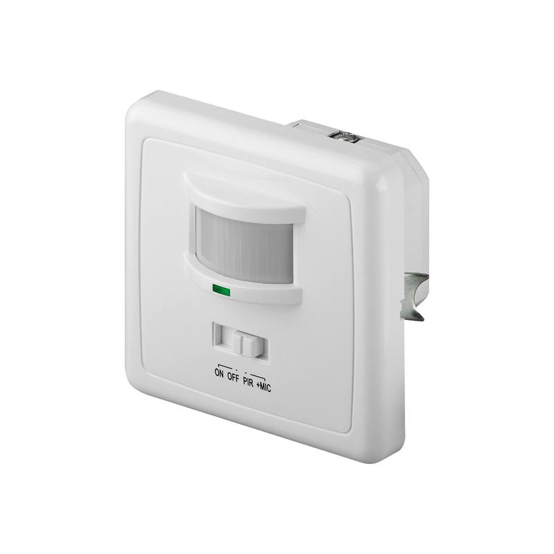 This product is an infrared motion sensor for indoor use. It reacts to heat radiation (infrared radiation) of moving objects that enter the detection area of the sensor, e. g. people and animals, etc. Entering the detection area of the sensor switches the connected electrical consumer on and after an adjustable time off again automatically. A built-in photocell prevents working of the motion sensor during sunlight. In addition, the ambient brightness can be adjusted with a regulator.