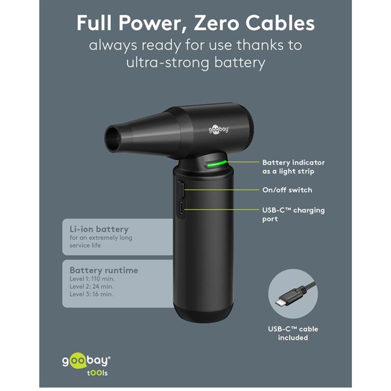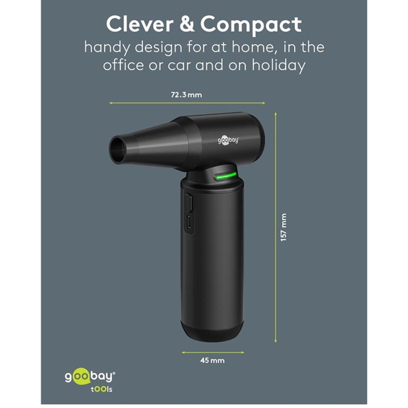 Goobay Air Duster Superior - 130000rpm Cordless Electric Air Blower with 8 Nozzles & 3 Brushes (180 W, Aluminium Design)