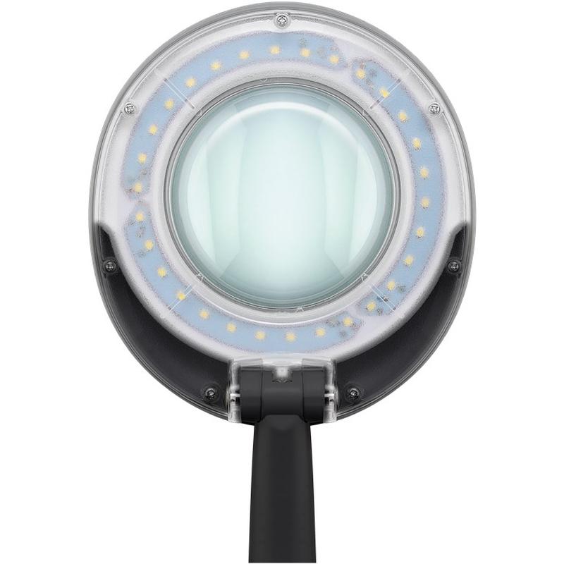 The Goobay LED magnifying lamp with base combines clear magnification with bright, shadow-reduced lighting for precision tasks at home or at work. A 100 mm glass lens with 3 dioptres (1.75x magnification) helps you see fine details more comfortably, while the daylight-balanced LED ring light delivers 450 lm of cool white light (6500K) for a clean, focused work area. The articulated arm offers a 330 mm working radius, and the lens head tilts up to 90°, making it easy to position for crafts, reading, beauty work, repairs, embroidery, soldering, and drawing. A non-slip base provides stable support on desks and worktables.