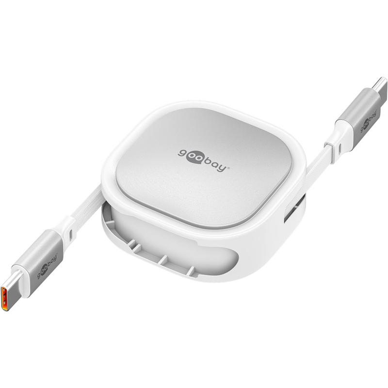 Goobay Retractable USB-C Cable - 1m Flat Charging Cable with 15W Power and Auto-Retract Mechanism