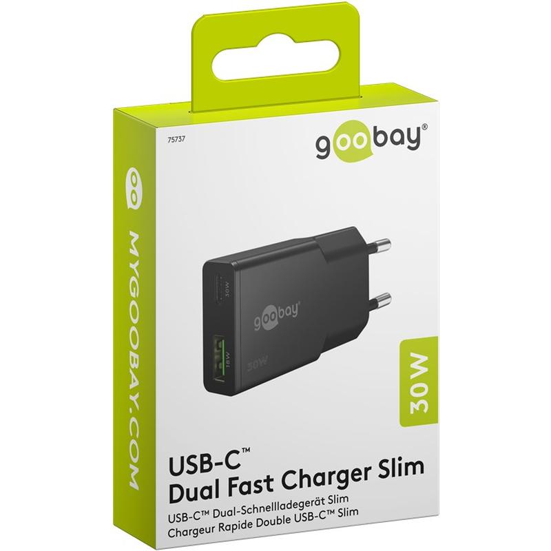 Goobay Slim USB-C PD GaN Dual Fast Charger 30W - Fast Charging, Slim Design, Ultimate Convenience