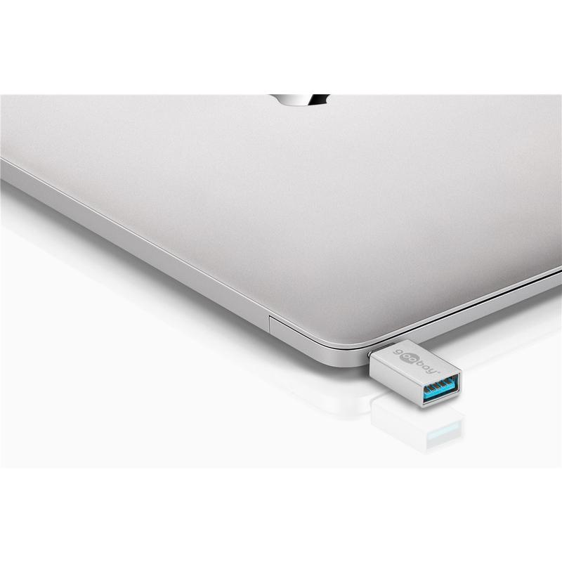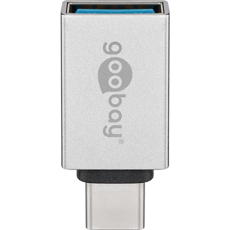 The USB-C/USB-A 3.0 OTG SuperSpeed Adapter for Charging Cables in silver offers versatile connectivity options for your devices. With a USB-C male connector on one end and a USB 3.0 female (Type A) connector on the other, this adapter enables you to connect USB-A cables to USB-C sockets, such as those found on laptops, PCs, or smartphones.