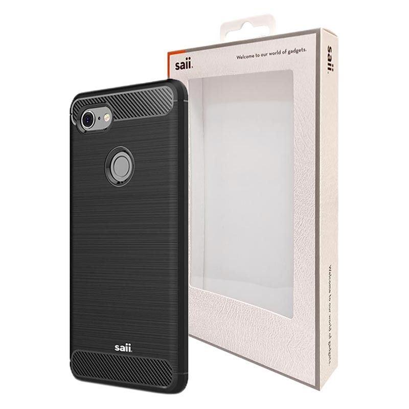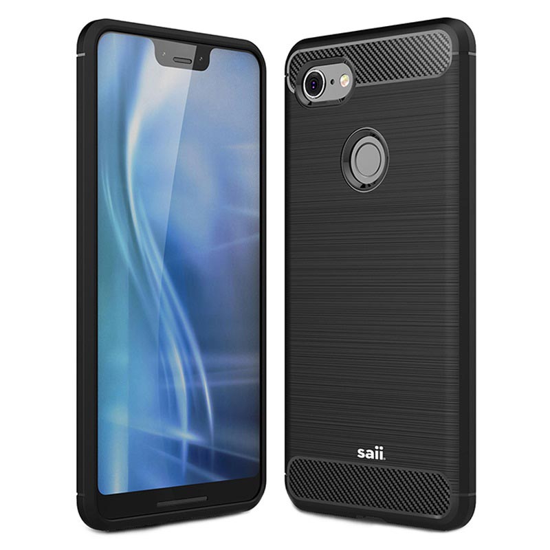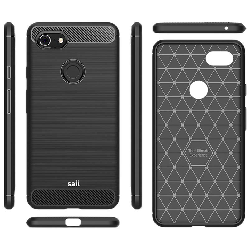 Saii Brušena TPU Zaštitna Maska za Google Pixel 3 XL - Karbonska Vlakna
