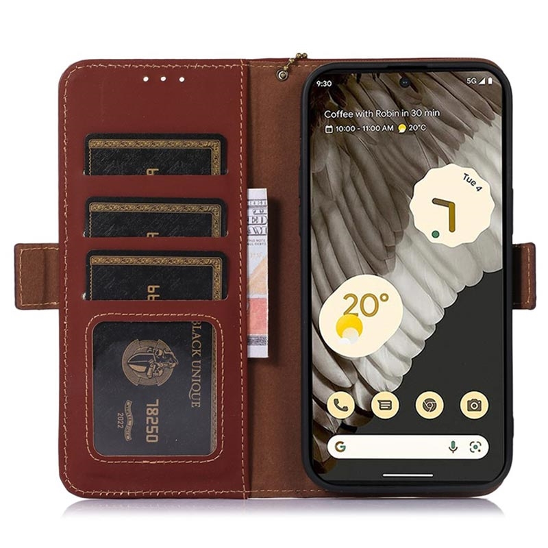Google Pixel 7a Kožna maska-Novčanik sa RFID-om - Braon