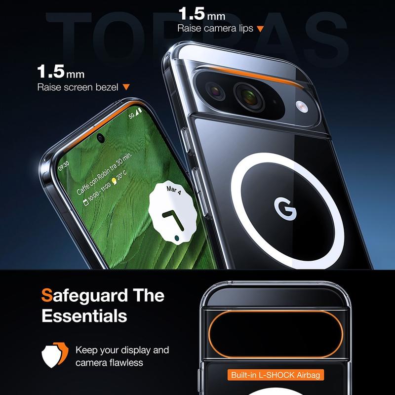 The Torras MagSafe-Compatible Transparent TPU Case for Google Pixel 9, Pixel 9 Pro combines style, protection, and functionality, making it the perfect choice for users who want a slim, durable case that highlights their phone’s design while offering MagSafe convenience.