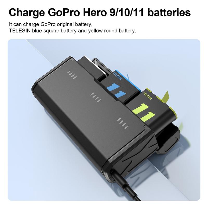 TELESIN GP-HPK-011 3-Slot Battery Charger & TF Card Storage for GoPro Hero 9, GoPro Hero 10, GoPro Hero 11