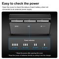 - Unplugged Power Query Function – When unplugged, opening the cover or inserting a battery automatically displays power levels.