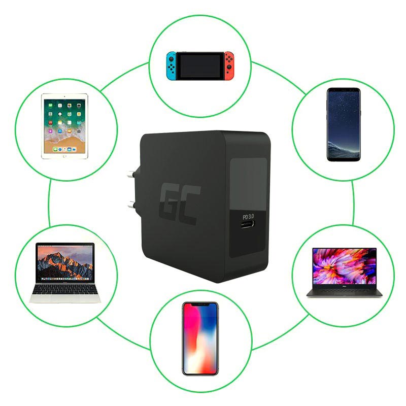 Green Cell PD 3.0 USB-C Zidni Punjač za Pametne Telefone i Laptopove - 60W