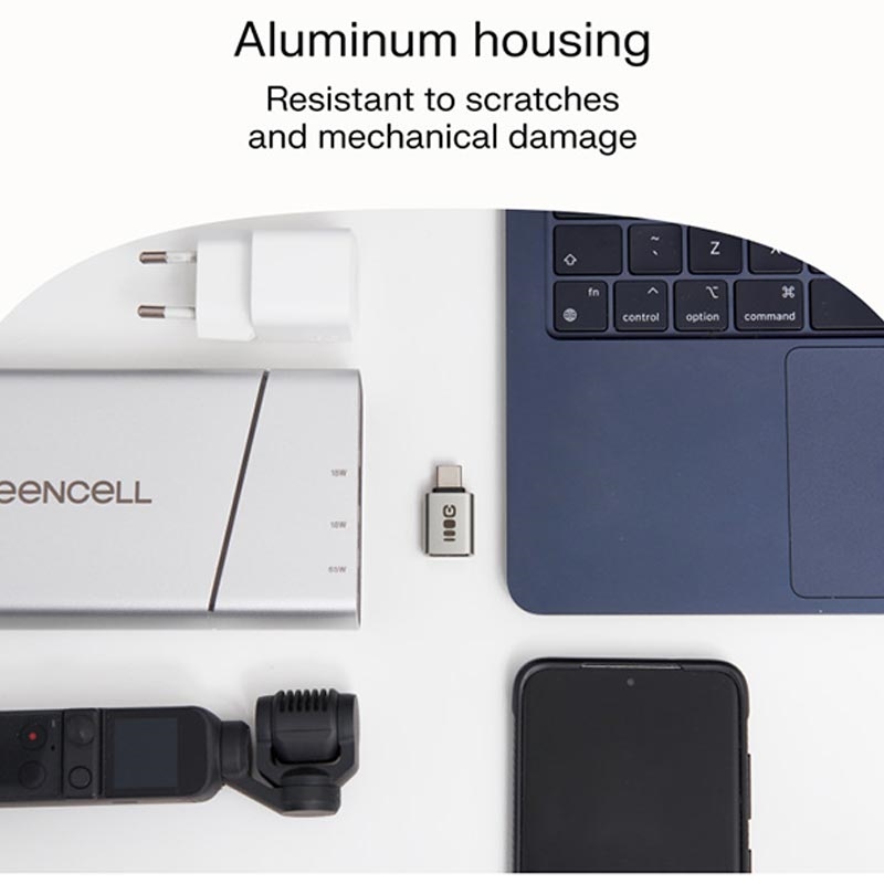 The Green Cell OTG Adapter blends style, strength, and speed. Its compact aluminum body ensures durability and easy portability, while the 480Mbps data transfer and 12W charging capacity make it a reliable everyday essential.