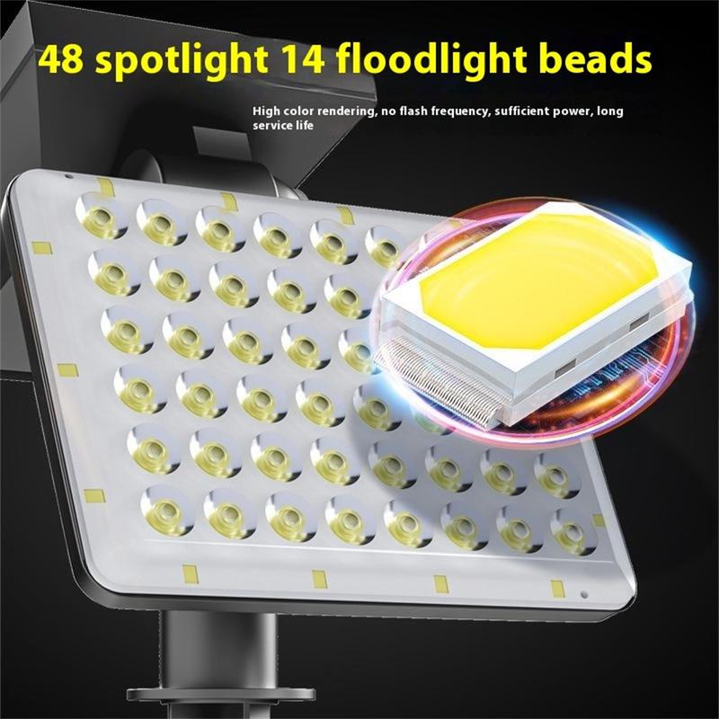 - High-Performance LED Array: Equipped with 48 spotlight LEDs and 14 floodlight LEDs, providing a wide 270-degree illumination range with a reach of 8–15 metres.