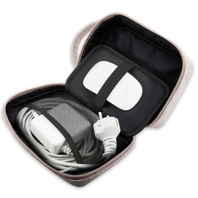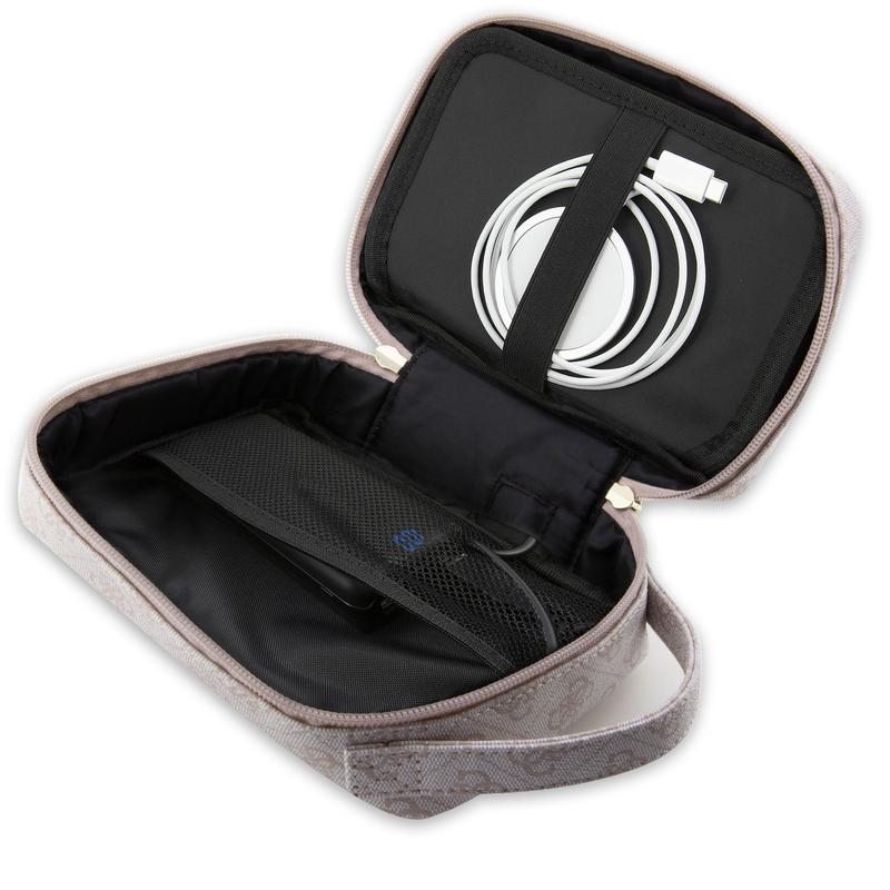 The Guess Travel Universal bag is the ideal travel companion for anyone looking for a stylish and convenient way to carry all their phone, tablet, or laptop accessories. Made with high-quality ECO leather, the bag features a finely textured surface adorned with the iconic Guess logo. Inside, well-designed pockets provide ample space for chargers, power banks, and power cables. The standout feature of this bag is the USB-A output, allowing you to connect a power bank and charge your phone directly from the side of the bag. With a clean design and a sense of style, this bag is perfect for travelers who value functionality and fashion.