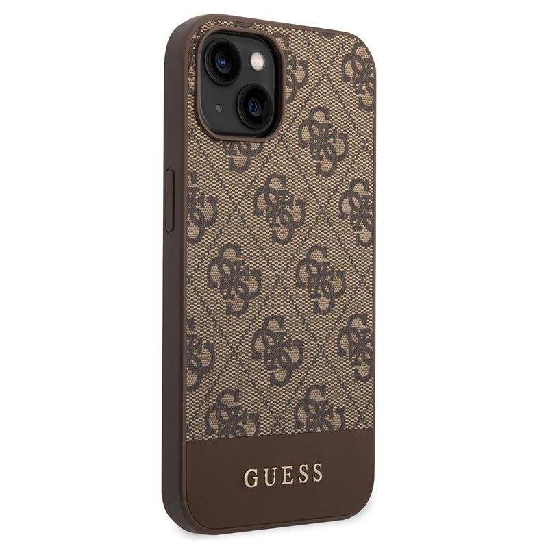 The Guess 4G Stripe hybrid case contains an elegant design that will make your iPhone 14 Plus unique-looking. It is an easily recognizable hybrid case with its metal Guess logo and luxurious leatherette texture with a 4g pattern that protects your iPhone 14 Plus adequately against everyday scratches and damage.