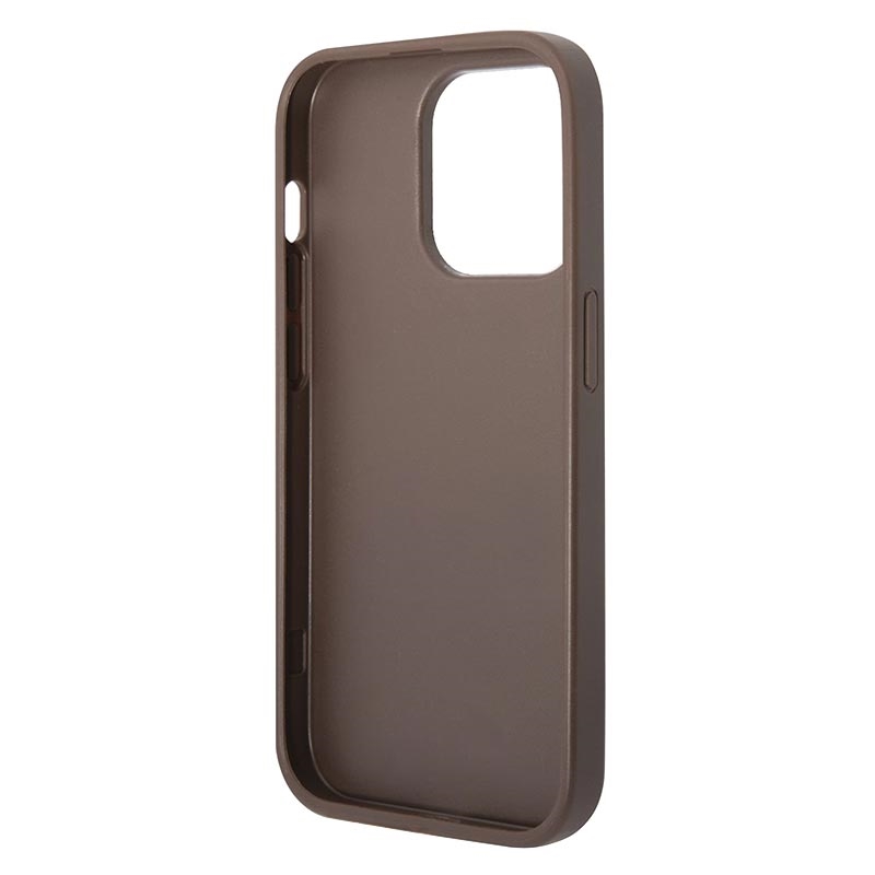 This durable case has a hard polycarbonate back and flexible TPU edges that guarantee the perfect fit, while slightly raised edges keep the display and camera of your iPhone 14 Pro Max scratch-free. The case features a metal Guess logo and luxurious leatherette texture with a recognizable 4G pattern for the classy look of your iPhone 14 Pro Max.