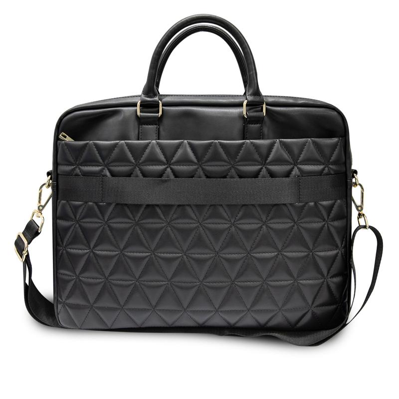 The Guess Quilted Laptop Bag is the perfect case for a 15-inch notebook. Made of high-quality ECO leather with a textured surface and high-quality stitching, this luxurious bag features the Guess logo in gold on the front cover. The inner part is reinforced with a soft insole to protect your notebook from surface damage, dirt, scratches, and minor falls. The carrying case includes a main compartment for the notebook, two handles, and a removable shoulder strap for comfortable carrying.
