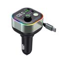 GZ11 65W PD Fast Charging Car Charger with Retractable Type-C Cable, Bluetooth Transmitter, Ambient Lighting