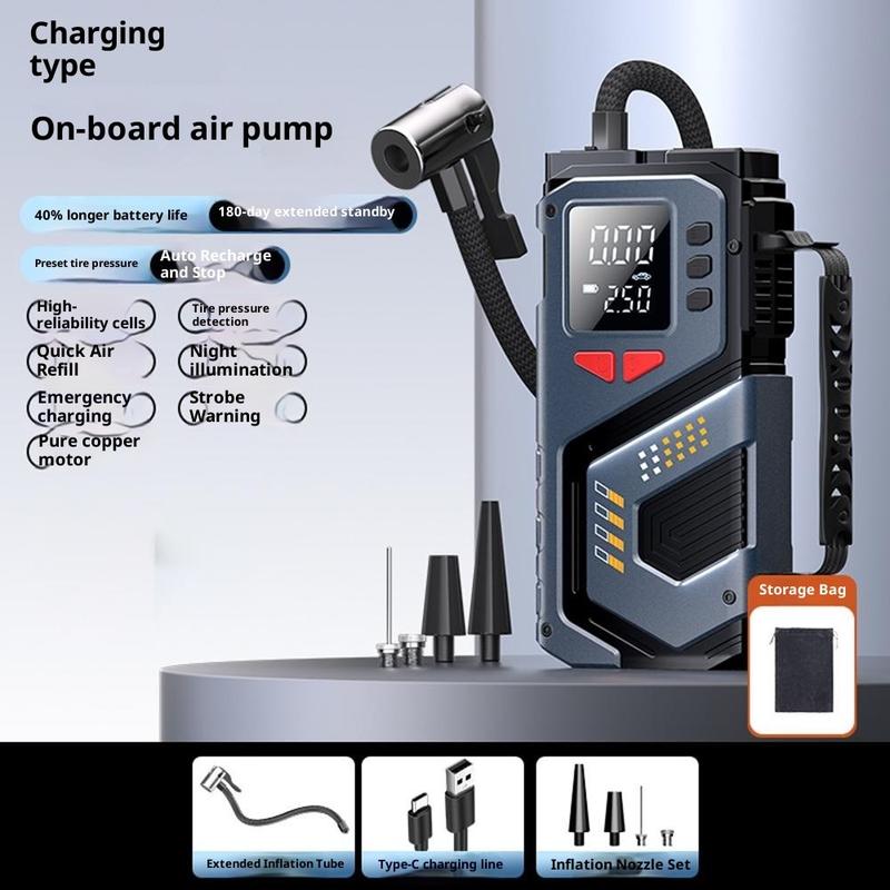 H06 Emergency Car Jump Starter & Tire Inflator - Digital Display Portable Air Pump with SOS Light & Flashlight