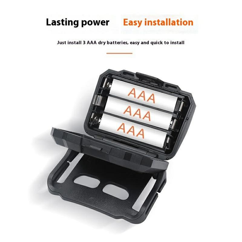 Made from ABS and PC materials, the headlamp is built for durability and resilience. The combination of XPE white LED and 2 × 2835 red LEDs ensures energy-efficient performance with reliable brightness.