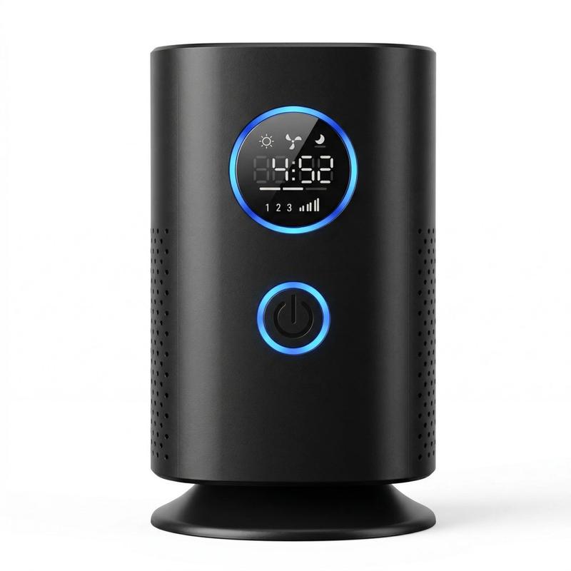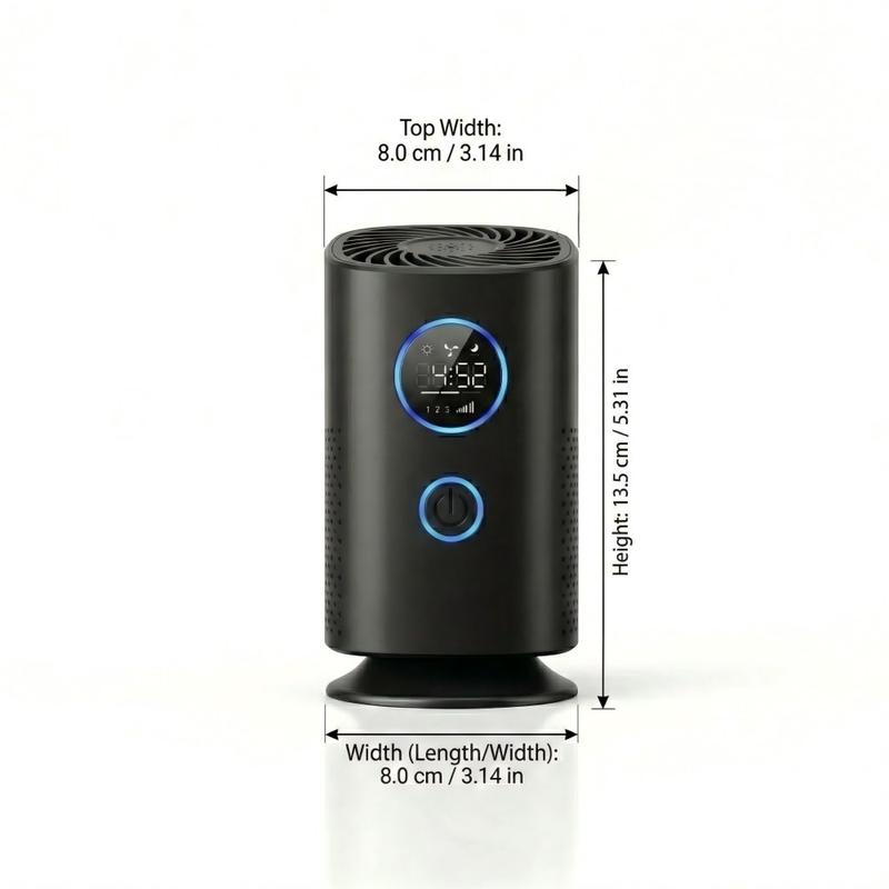 The H1 desktop air purifier is designed for users who want a compact air cleaning solution for smaller personal spaces such as bedrooms, desks, cars, and home work areas. With negative ion technology, a multi-stage composite filter, and a compact rechargeable design, it helps improve everyday air quality while fitting neatly into modern spaces. Its black finish and OLED display give it a clean, practical look that works well on a bedside table, office desk, shelf, or car console.
