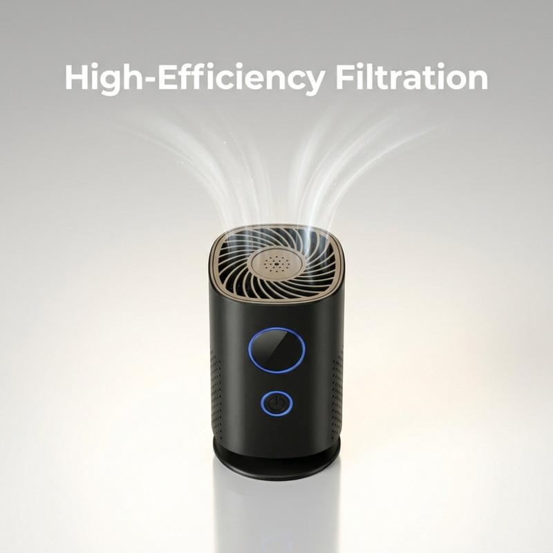 - HEPA-based filtration design supports more effective air cleaning in compact personal spaces.