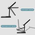 Functions as a holder for both smartphones and tablets, with adjustable height for vertical extension, angle adjustment for forward and backward tilt, and a full 360-degree rotation for horizontal viewing