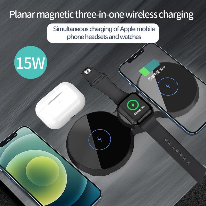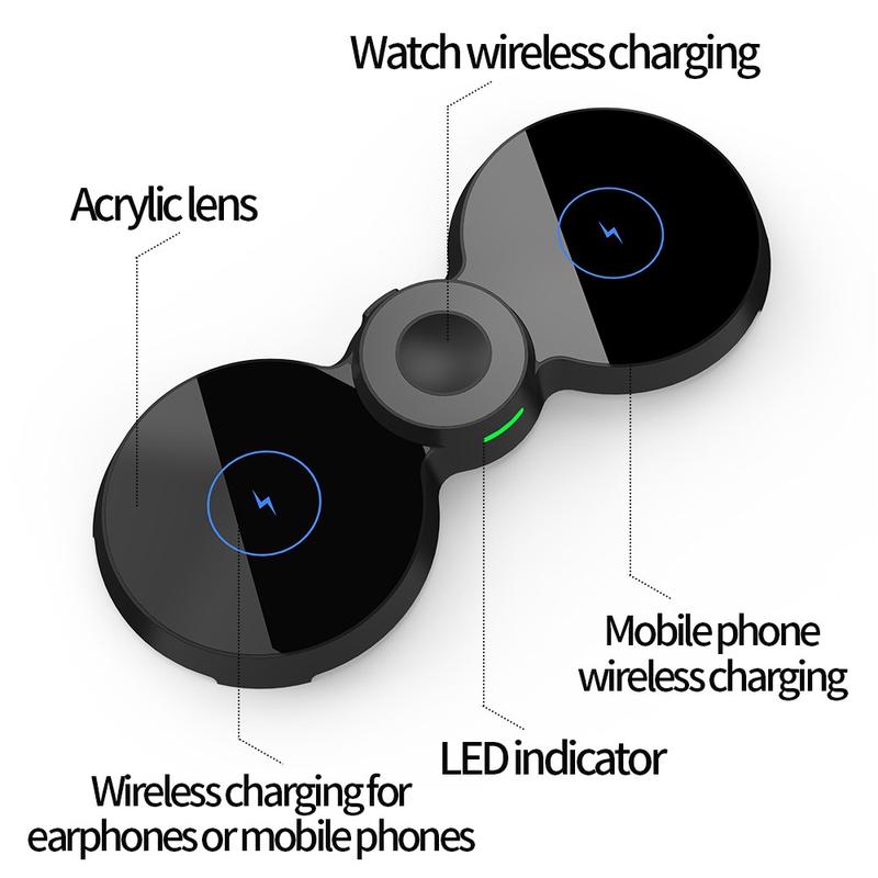 H20 3 in 1 15W Wireless Charger Fast Charging Pad Station Holder for Smartphone/Smart Watch/Earphone
