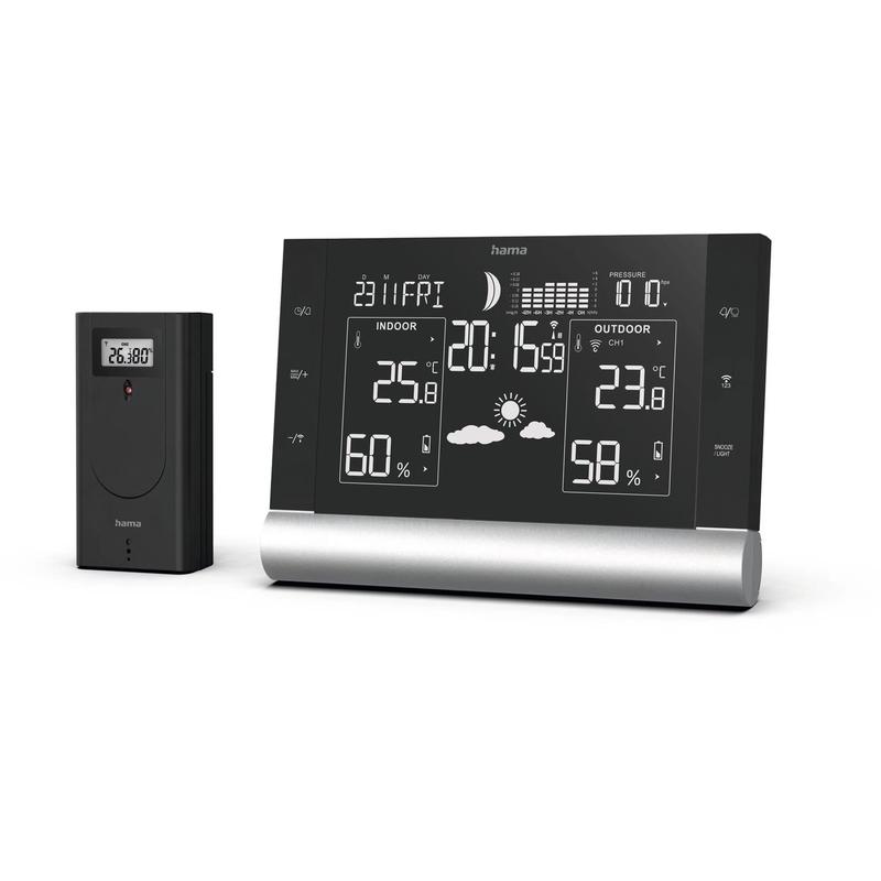 Hama Black Line Plus Weather Station with Alarm Clock, Extreme Condition Warning - Precise Weather Forecast
