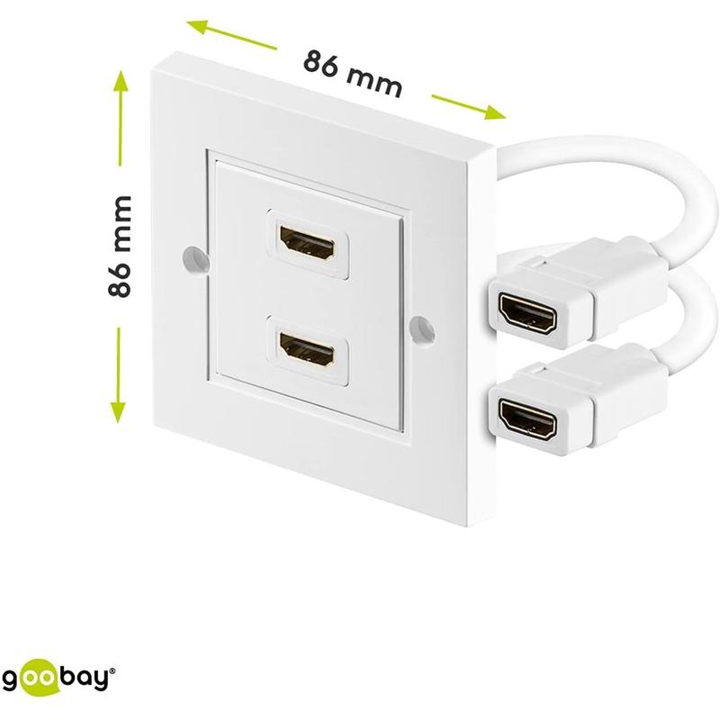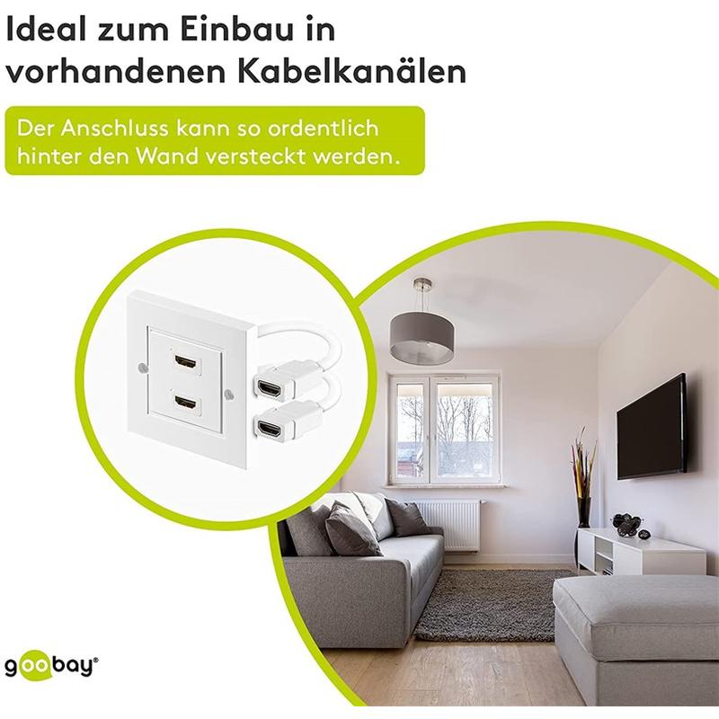 HDMI™-kopplingsdosa för infälld montering gör det möjligt att ansluta 2 HDMI™-kompatibla enheter till väggen och överföra signalen till flera rum. Signalöverföring med hög upplösning med upp till 4K @ 60 Hz (nedåtkompatibel), HDMI™-infälld låda för snabb, flexibel och estetisk kabeldragning i väggen, HDMI™-vägguttaget är enkelt att installera i alla standard 68 mm infällda lådor/vägglådor för hålväggsinredning. Inbyggt HDMI™-uttag för anslutning av tv-apparater och monitorer med spelkonsoler som PlayStation eller Xbox samt beamers, projektorer och streamingmottagare som Amazon Fire TV eller Apple TV, Guldpläterade HDMI™-kontakter och avancerad teknik garanterar felfri signalöverföring, klart ljud och skarp video- och bildkvalitet. Stöder alla vanliga funktioner som ARC (Audio Return Channel), HDCP, HEC eller 3D