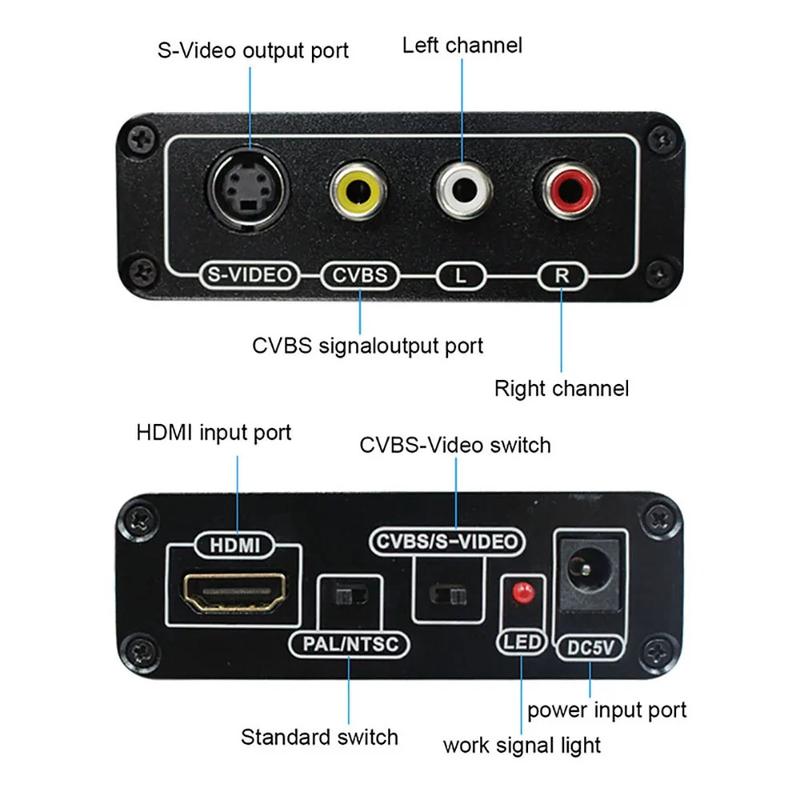 This HDMI to S-Video / AV converter allows you to connect modern HDMI sources-such as computers, laptops, media players, and game consoles-to older CRT TVs and S-Video monitors that use composite (CVBS) or S-Video inputs.
