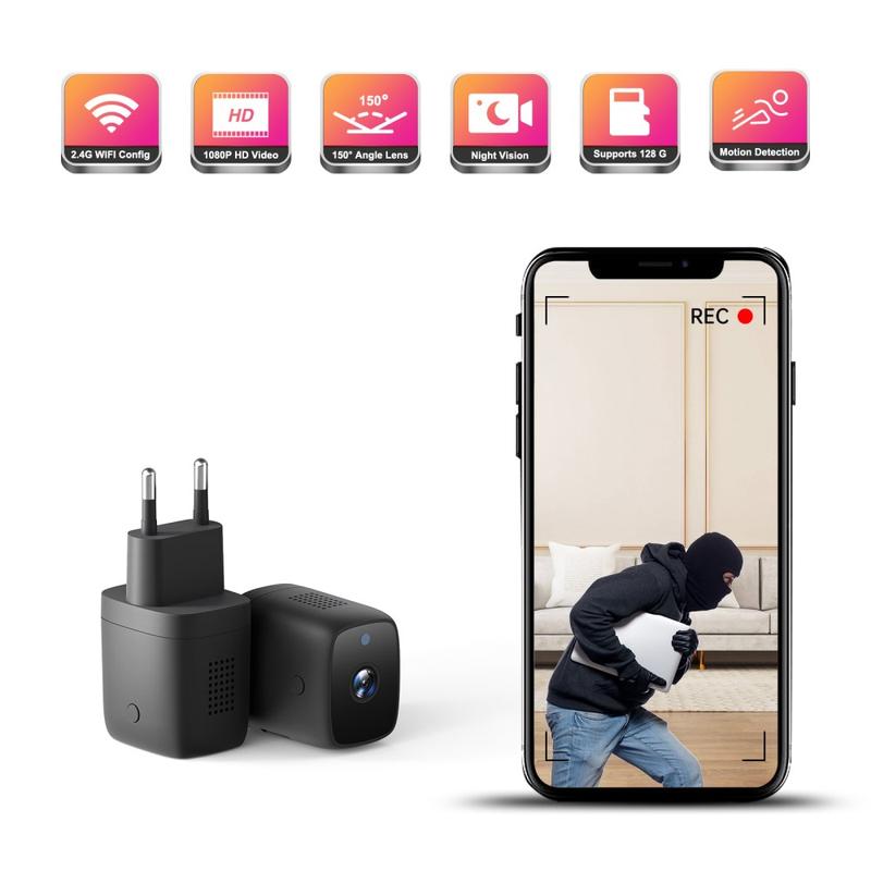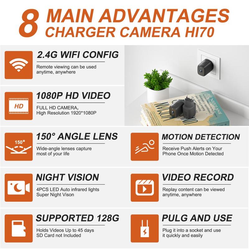 HI70 Wall Charger Shape Night Vision Motion Detection WiFi Remote Mini Camera
