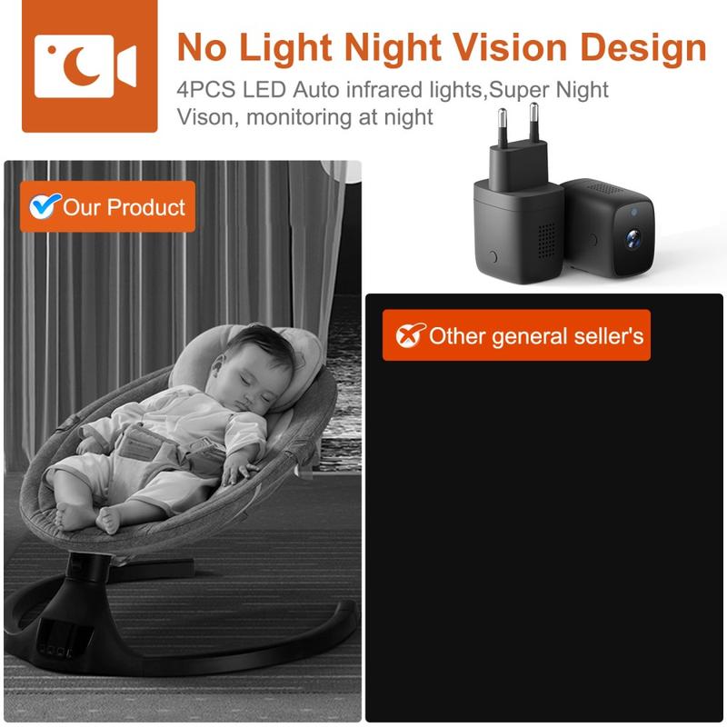 USB charger camera: Charger WiFi remote mini camera, 4pcs LED IR lights+infrared automatic, 150 degree wide angle lens, 4k/2k/1080p/720p high resolution. Support video recording, audio monitoring, support viewing on android, ios, for iPad. Plug and play