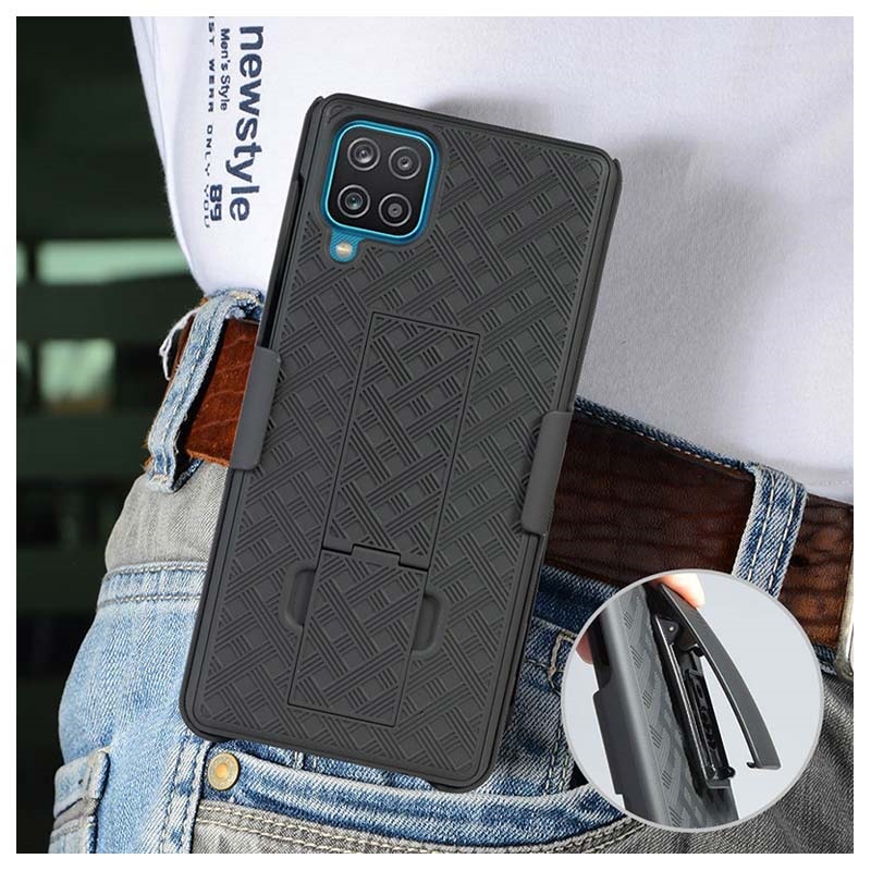 This hybrid case for Samsung Galaxy A12 features a unique belt-buckle design, a cool looking accessory that will allow you to safely carry your lovely Samsung Galaxy A12 wherever you go.
