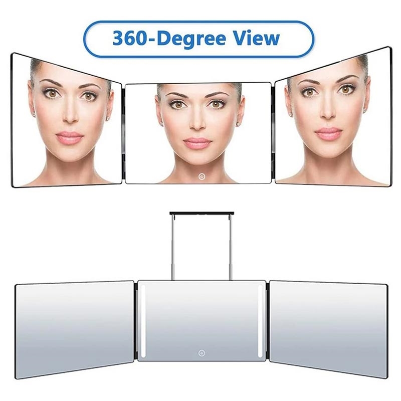 High-Definition LED Triple Folding Vanity Mirror with Adjustable Hook