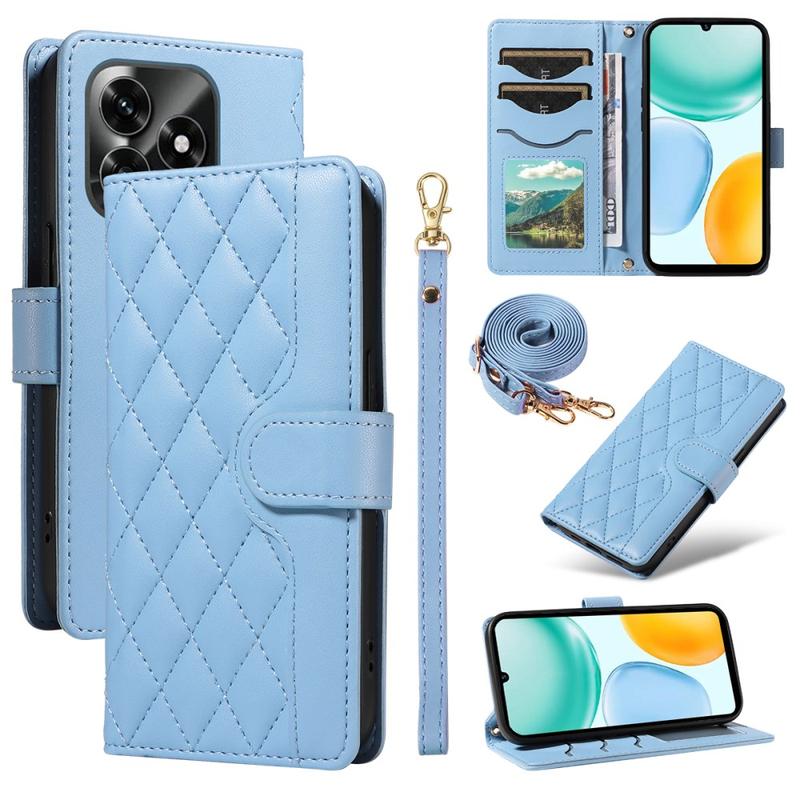 Luxury Quilted Wallet Case with Shoulder & Wrist Strap for Honor X5c Plus - Rhombus Pattern Protective Cover