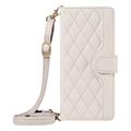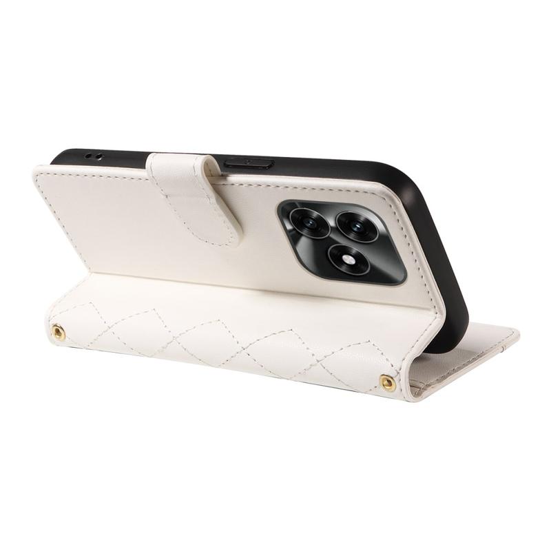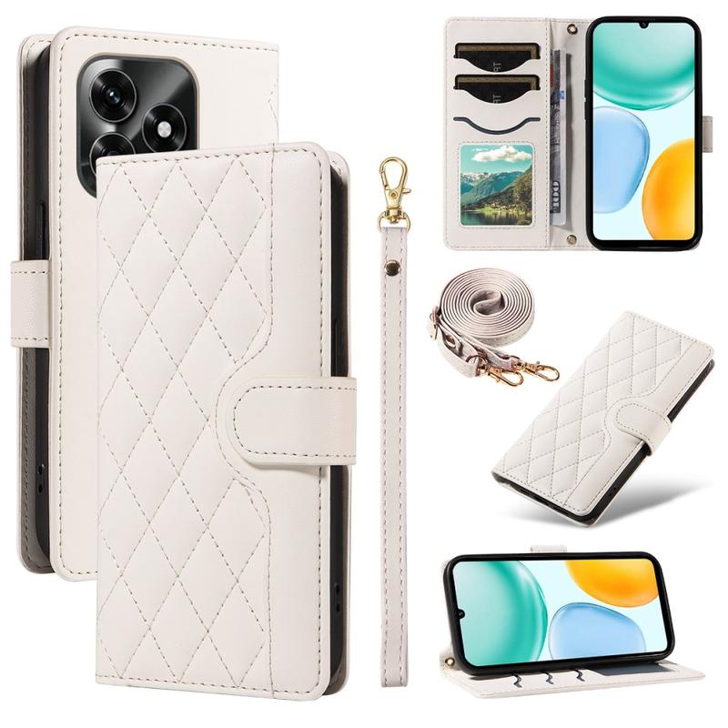 Luxury Quilted Wallet Case with Shoulder & Wrist Strap for Honor X5c Plus - Rhombus Pattern Protective Cover