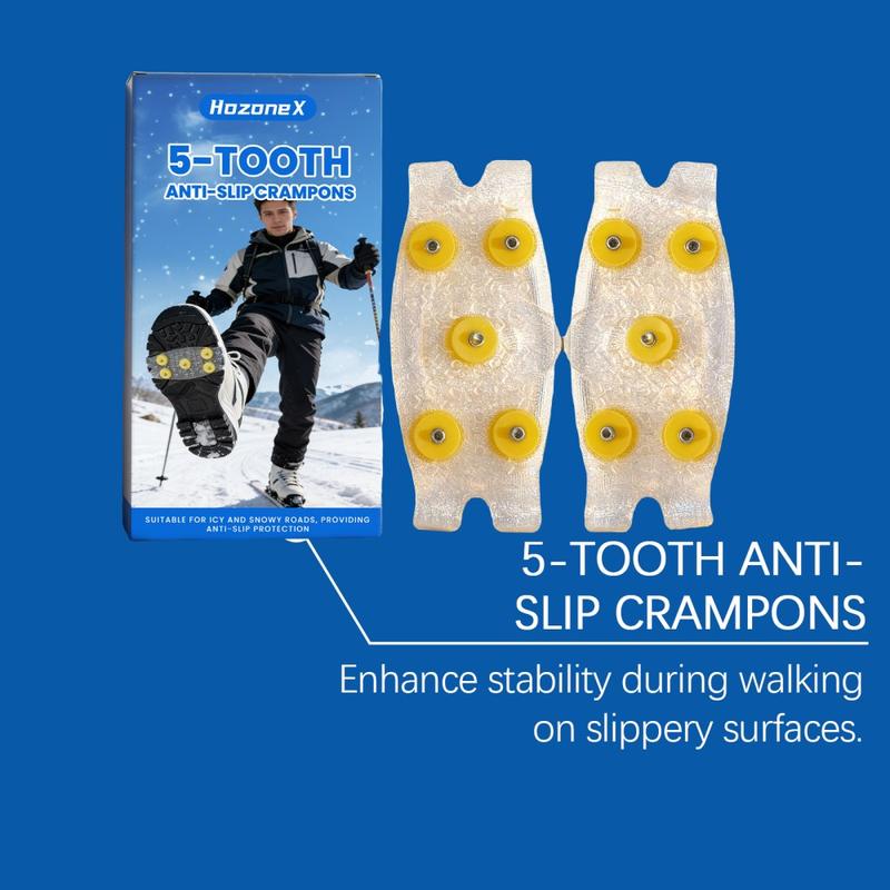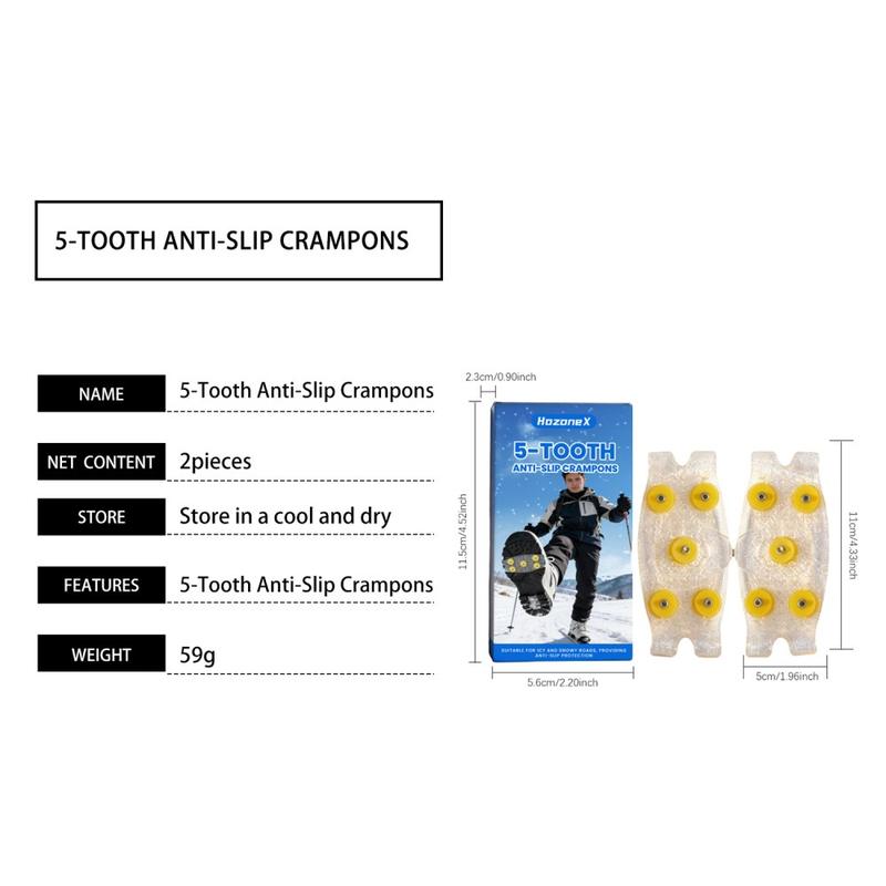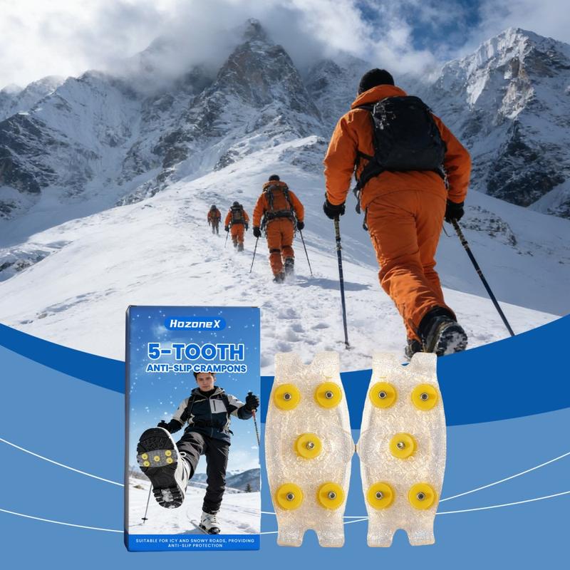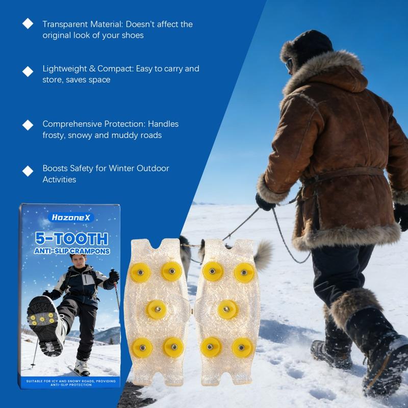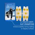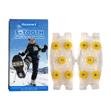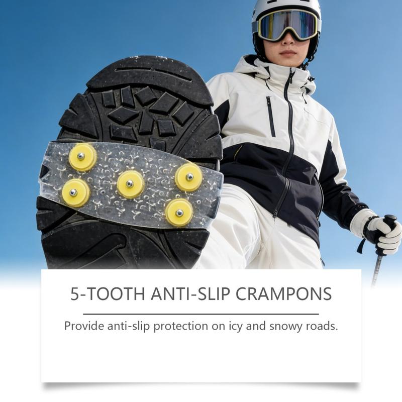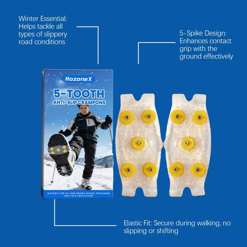 Walk more confidently on icy paths and snowy streets with HOZONEX 5-teeth ice cleats. Designed to improve traction on slippery surfaces, each cleat uses 5 strategically placed metal spikes to increase ground contact and help reduce slipping when conditions get slick. The flexible TPE base stretches over many shoe types, creating a secure fit that stays stable during walking without shifting around.