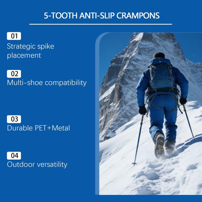 These cleats are a simple, affordable safety upgrade for winter conditions. They pack small, weigh very little, and can be fitted quickly over many shoes, making them easy to keep on hand. The 5-spike layout provides targeted traction without adding bulk, and the TPE base is designed for a secure fit and long-lasting use on slippery surfaces.
