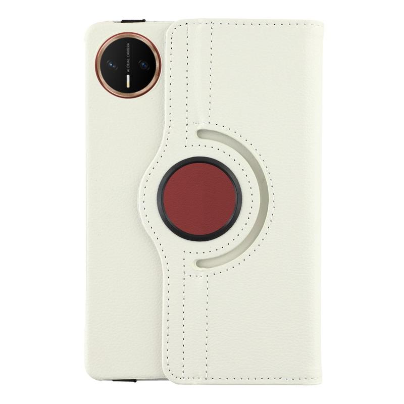 Protect and enhance your Huawei MatePad Mini with this slim rotating-stand case. A tough PC shell teams with a soft, lychee-texture PU leather exterior to shield your Huawei MatePad Mini from bumps and scratches, while the 360 swivel lets you switch effortlessly between portrait e-reading and landscape streaming. A soft inner lining guards the display, and an elastic band keeps the cover securely closed in your bag.