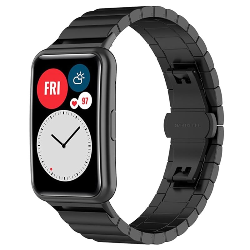 Elegant and trendy strap made just for your Huawei Watch Fit. A classy stainless steel wristband features a hidden butterfly buckle for a stylish appearance and convenient operation. With a minimalistic, classic design, this strap makes your Huawei Watch Fit suitable for all occasions.
