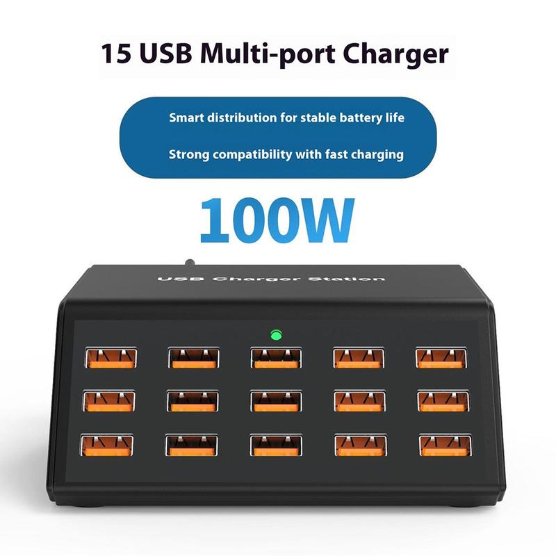 - Massive 15-Port Charging Capacity - Simultaneously charge up to 15 devices with a total output power of 100W, ensuring every device receives efficient and stable charging.