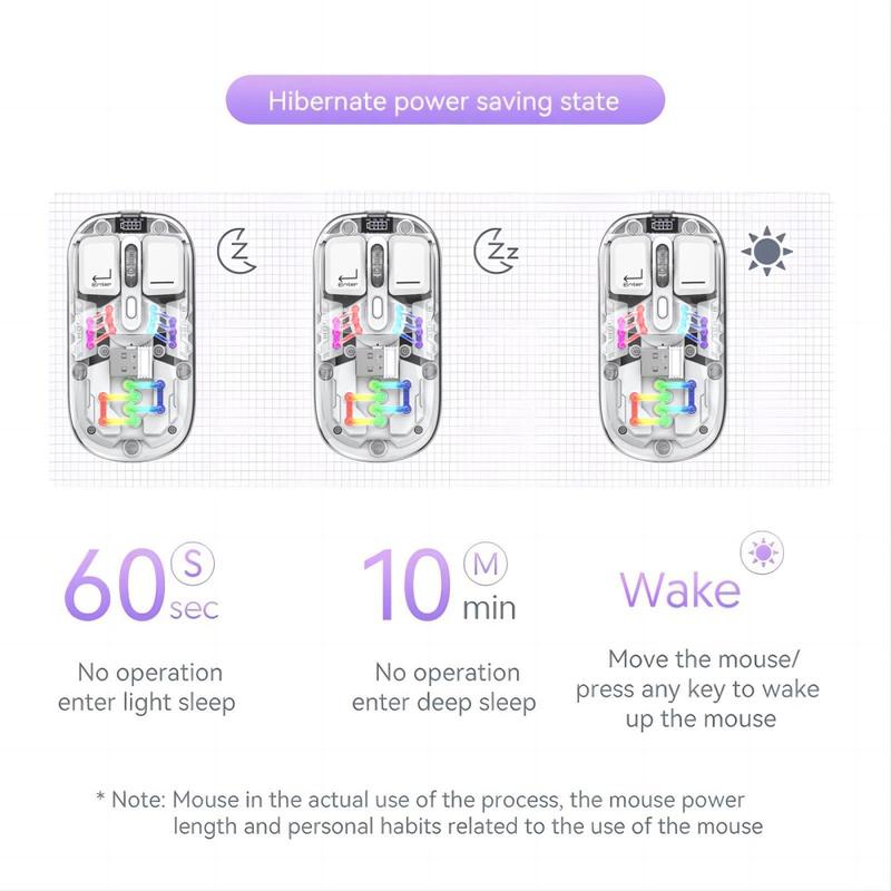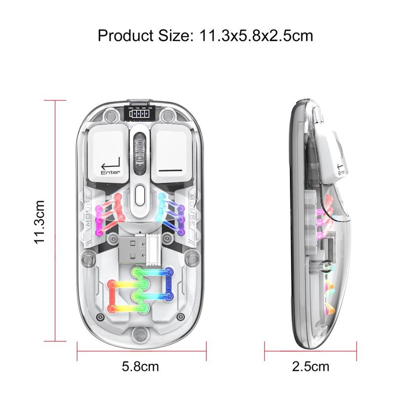 The HXSJ T200 Wireless Bluetooth Mouse offers dual connectivity via Bluetooth and 2.4GHz wireless, supporting simultaneous connections to two devices. Crafted from transparent PC material with customizable RGB lighting, this mouse delivers a high-end look and superior functionality. With adjustable DPI (800/1200/1600), a long-lasting 400mAh rechargeable battery, and a sleek ergonomic design, it ensures precise and smooth operation. Ideal for both work and gaming, the mouse enhances efficiency and comfort with silent clicks and vibrant lighting.