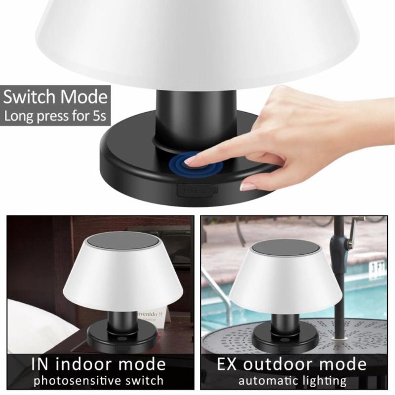 Versatile indoor–outdoor solar table light crafted from durable ABS + PC, featuring smart dusk-to-dawn control, a high-capacity 2200 mAh battery and four dimmable settings—all in a compact, cable-free design that fits lifestyles.