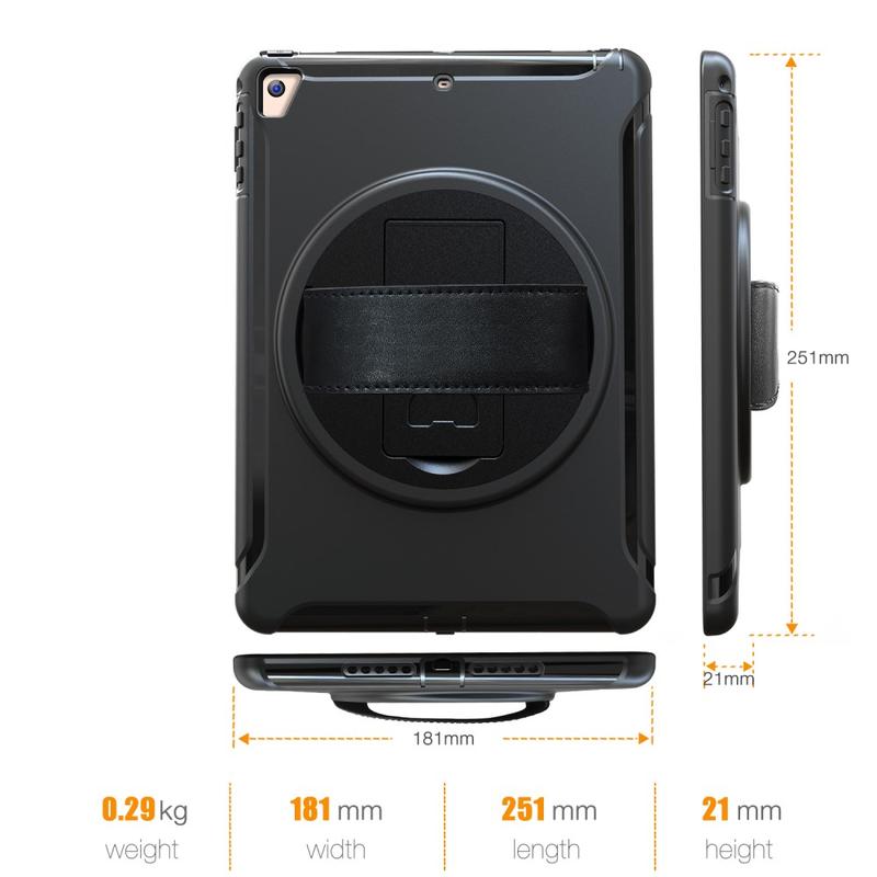 - Heavy Duty 360 futrola sa trakom za ruku za iPad 9.7 (2017), iPad 9.7 (2018), iPad Air, iPad Air 2, iPad Pro 9.7