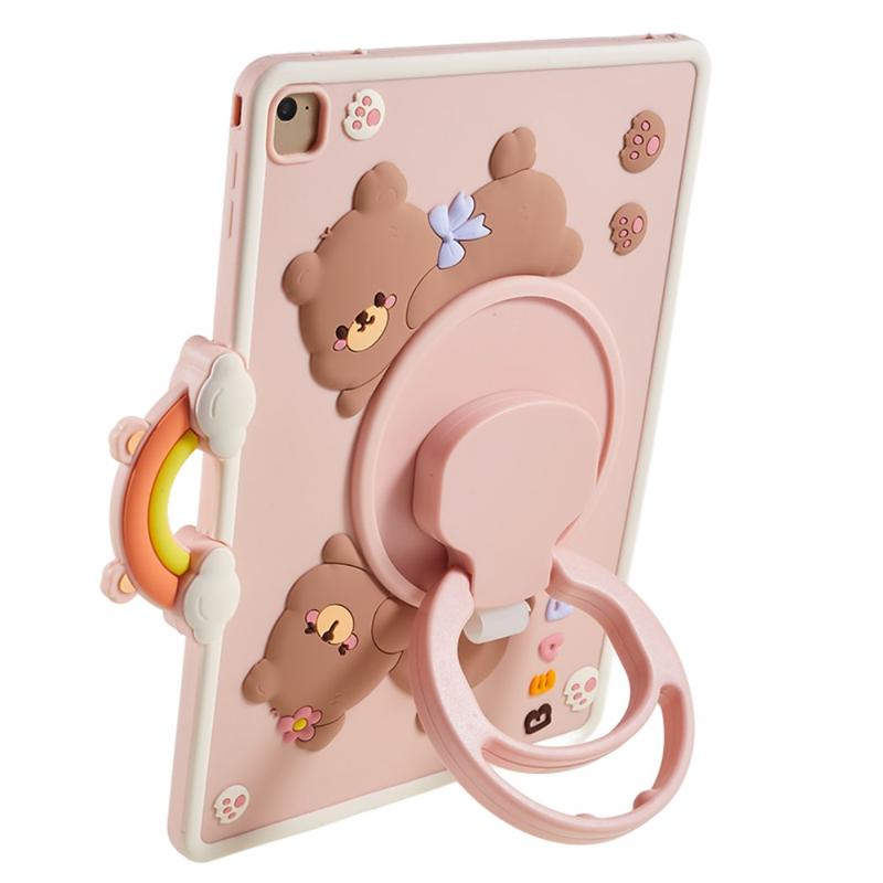 Cartoon Bear Silicone Case with Kickstand for iPad 9.7 (2017), iPad 9.7 (2018), iPad Air, iPad Air 2