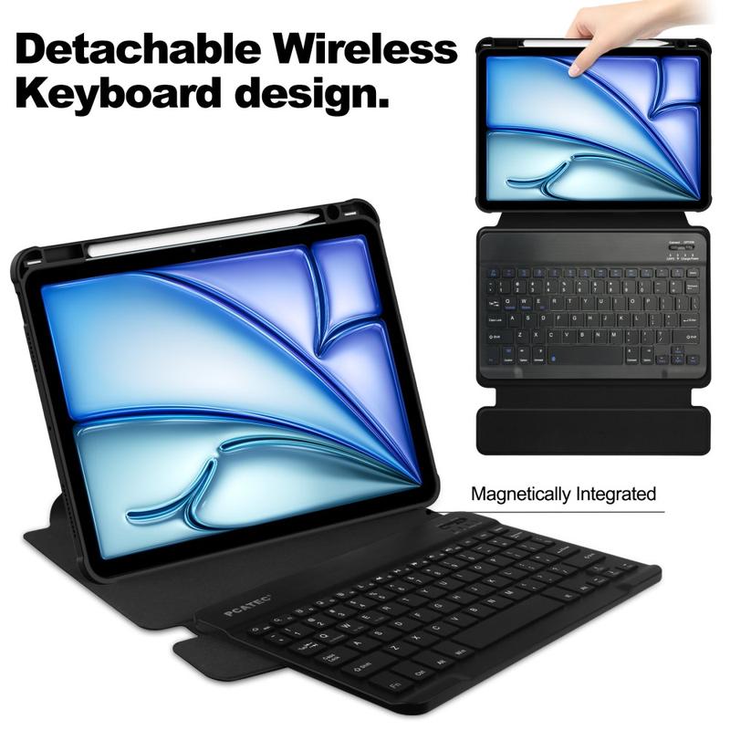Experience elevated convenience and protection for your iPad Air 11 2024/2025. This versatile case features a 360-degree rotating stand, offering both landscape and portrait display options for effortless multitasking. Crafted from a blend of PU leather and acrylic, it provides durable scratch and impact resistance while maintaining a sleek, modern look. The integrated keyboard enhances productivity on the go, making it a top choice for students, professionals, and everyday users alike.